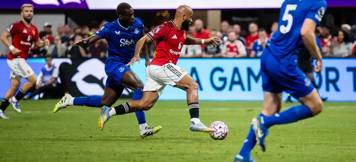 北京时间8月4日5:00,英超夏季赛循环赛第三轮,曼联对阵埃弗顿。上半场比赛,红魔前场精彩配合创造点球,B费一蹴而就。随后埃弗顿在第40分钟扳平,下半场比赛,B费送出助攻,芒特接球转身破门。但随后一个乌龙球将比分最终定格为2-2。双方握手言和。